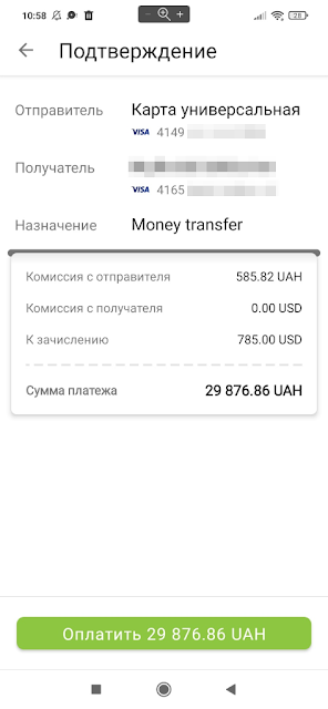 Деньги на Револют заходят практически мгновенно:Правда, есть нюанс - почему-то можно отправлять только с Визы на Визу. При попытке отправить деньги на Мастеркард Приват выдает ошибку:
